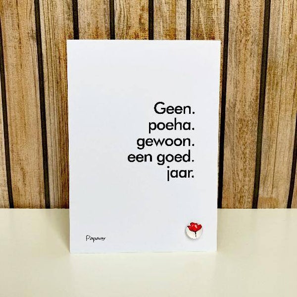 Tekst in zwarte letters op de voorkant, een klein roodkleurig klaproosje incl. merk op de achterkant. - Geleverd inclusief envelop.